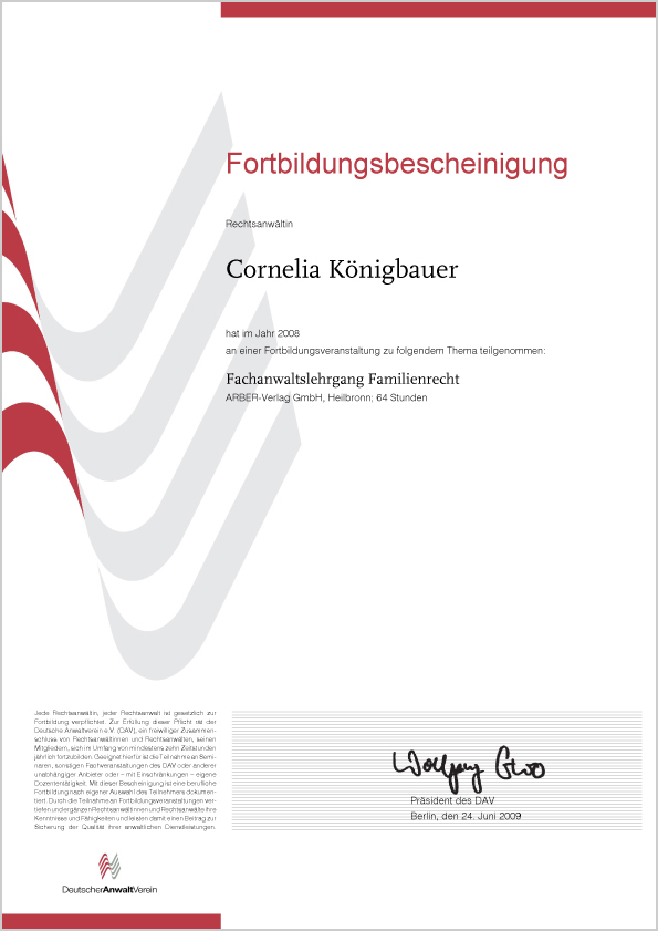 DeutscherAnwaltVerein Fortbildungsbescheinigung 2008 ......................................................................................................................................................