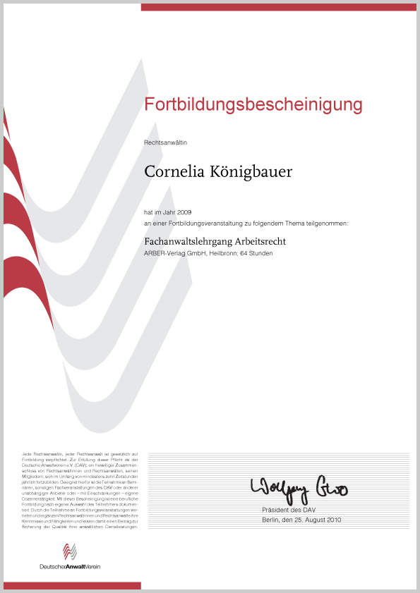 DeutscherAnwaltVerein Fortbildungsbescheinigung 2009 ......................................................................................................................................................